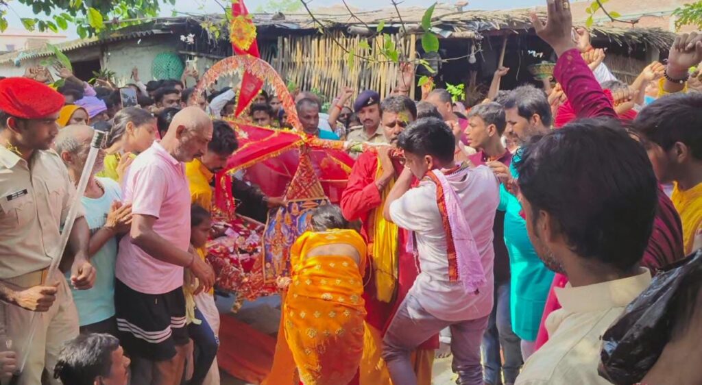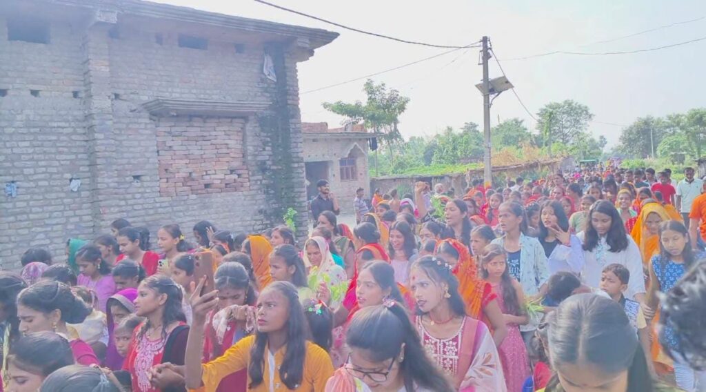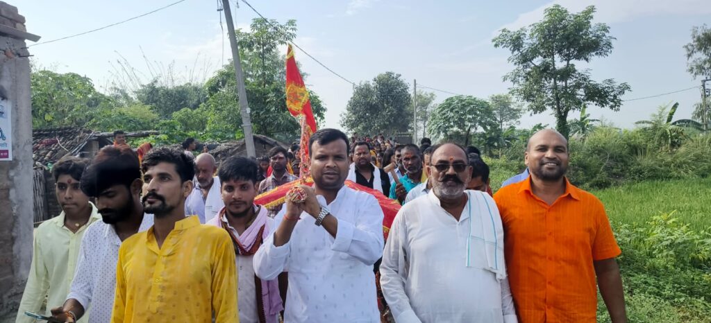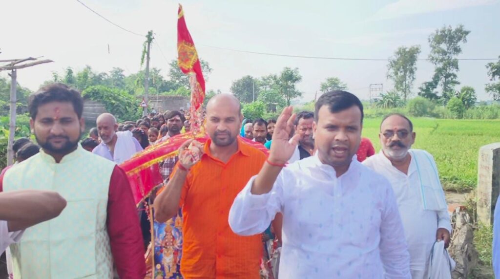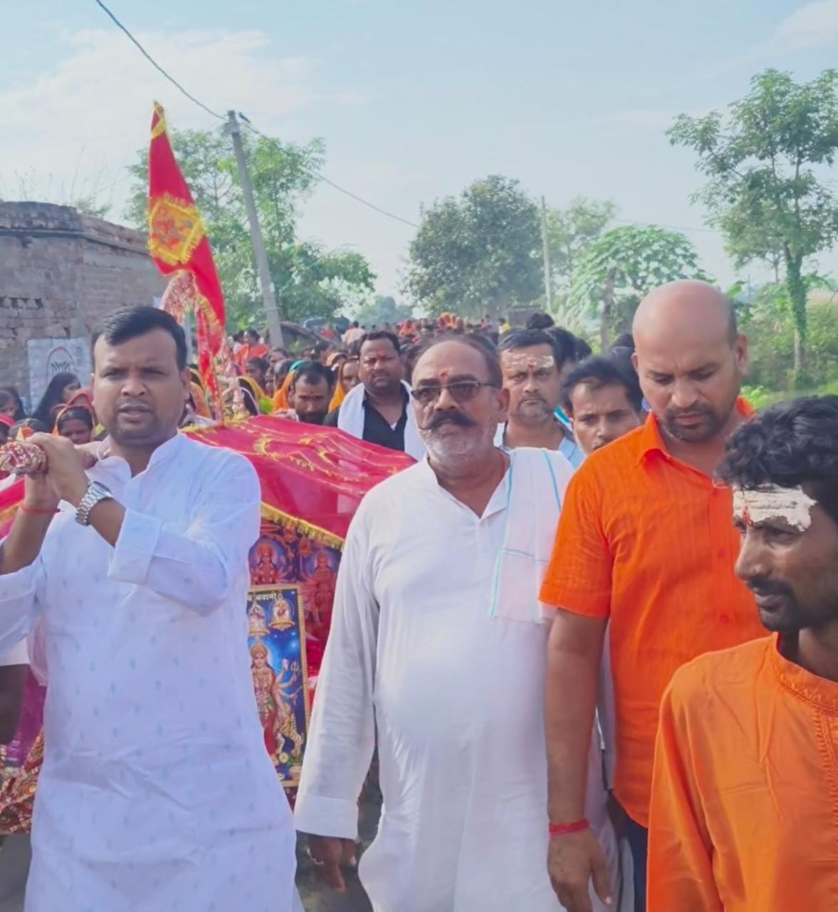 मझौलिया प्रखंड क्षेत्र के बखरिया पंचायत में मेला बाजार से बेल निमंत्रण के लिए भव्य शोभायात्रा निकाली गई इस दौरान भाजपा नेता राहुल कुमार ने सामिल हुए और ढोल बाजे की घुन और भक्तों के जयकारों से ‌वातावरण गुंजायमान हो उठा मां भवानी के श्रद्धालु भक्तों ने। रुक रुक कर जय माता जी के जयकारे लगाए शोभा यात्रा थवाईय चौक होते हुए राजघाट मंदिर से परिक्रमा करते हुए वैदिक मंत्रोच्चार के बीच बेल नियंत्रण की रस्म पूरी कराई गई उपस्थित भाजपा नेता राहुल कुमार। पूजा अध्यक्ष बृजेश कुमार मिश्रा मुखिया पति एकबाली राम सामाजसेवी निक्कू पटेल, पूर्व सरपंच मनोज प्रसाद, सरपंच प्रतिनिधि पूरण दास,जयनाथ प्रसाद, सोनू प्रसाद ,अभय कुमार आदित्य सिंह, अरविंद सिंह ,आलोक कुमार मिश्रा,सुरेश शाह,विंदु यादव,सुबोध कुमार, भिखारी सिंह दीपू सिंह आदि लोग उपस्थित रहे