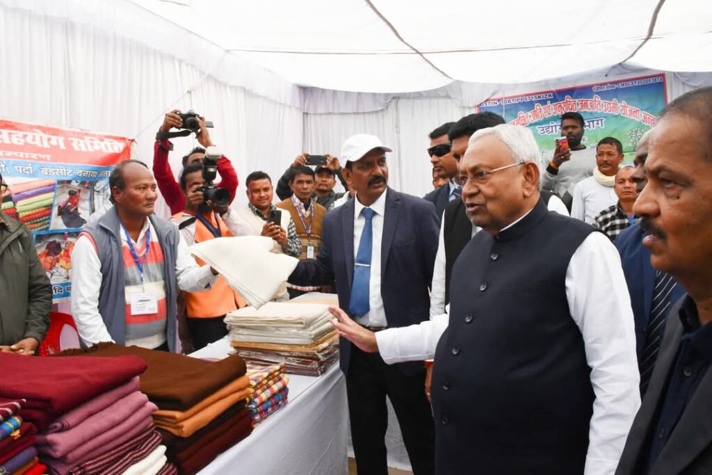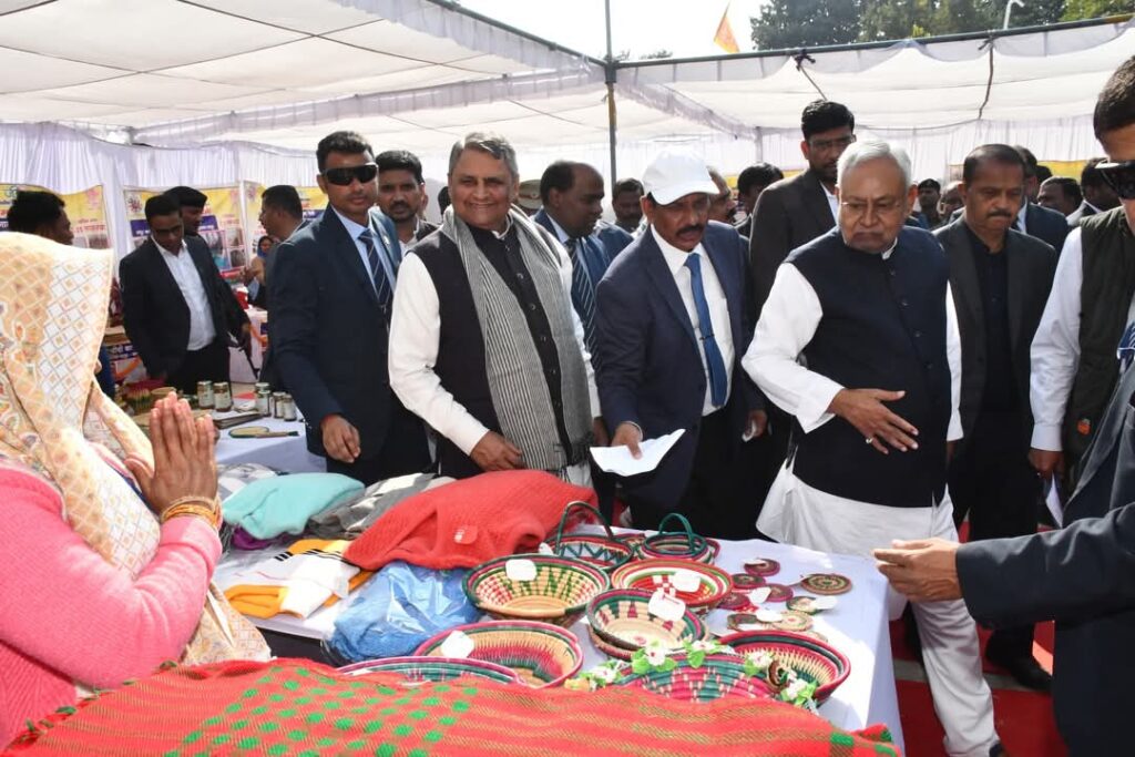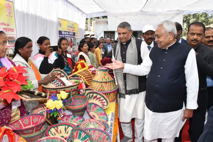 वहीं आदिवासी महिलाओं नें सरकार के स्वागत में जमकर फूलों की बारिश की तो जीविका दीदी समूह औऱ हस्तकरघा स्टॉल का मुख्यमंत्री नें जायजा लिया औऱ ग्रामीणों समेत महिलाओं के कार्यों की उन्होंने सराहना क़र लोगों के अभिवादन स्वीकार किये।