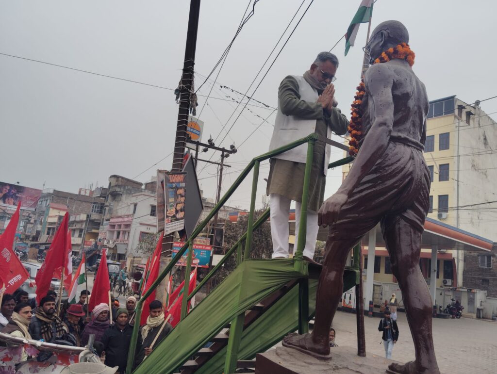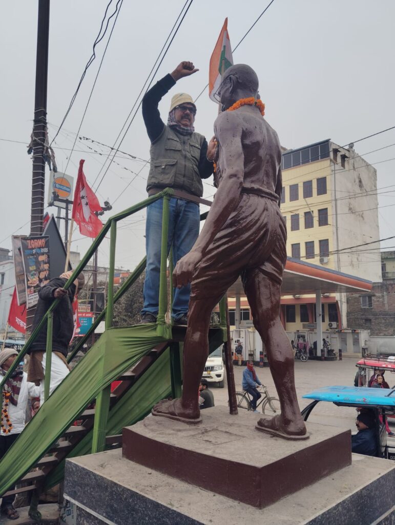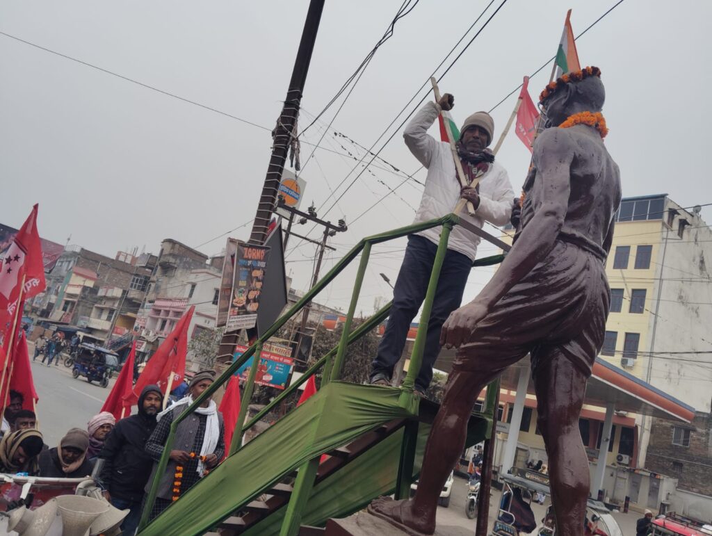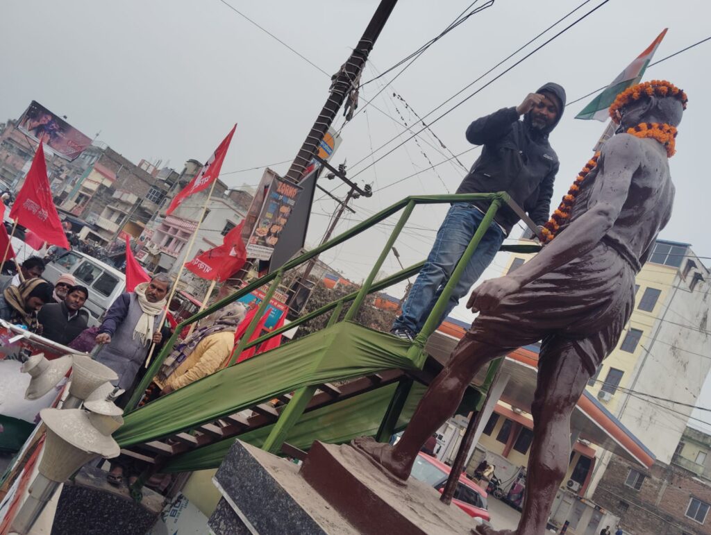 भाकपा माले जिला कमिटी सदस्य सुनील कुमार राव ने कहा कि महात्मा गांधी के विचार—अहिंसा, सत्य, सामाजिक न्याय और भाईचारे—आज पहले से कहीं अधिक प्रासंगिक हैं। भाकपा (माले) देश में बढ़ती नफरत, दमन और तानाशाही प्रवृत्तियों के खिलाफ संघर्ष तेज़ करेगी और गांधीजी के सपनों वाले समतामूलक, लोकतांत्रिक भारत के निर्माण के लिए लगातार आंदोलन करती रहेगी। इनके अलावा फरहान राजा, सलामत, नवीन कुमार, जोखू चौधरी, सुरेन्द्र चौधरी, हारून गद्दी, जितेन्द्र राम, राजकुमार, संजय यादव, विरेन्द्र पासवान, मंगल चौधरी, मुस्तफा आदि नेताओं ने भी सभा को संबोधित किया।