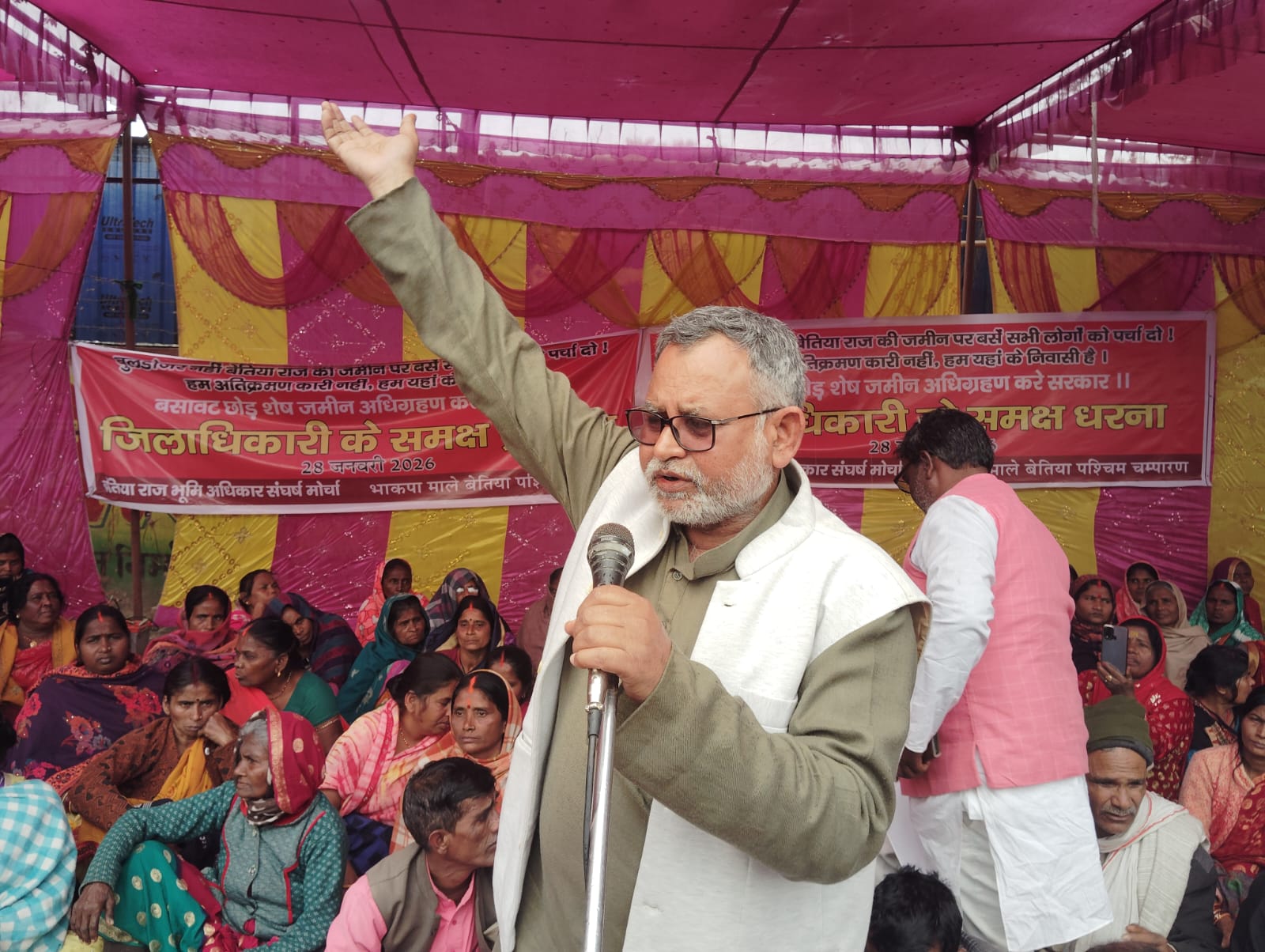 बेतिया राज की जमीन पर चल रही बुलडोजर कार्रवाई के खिलाफ तथा कानूनी अधिकारों की रक्षा की मांग को लेकर आज जिलाधिकारी कार्यालय के समक्ष भाकपा माले और बेतिया राज भूमि अधिकार संघर्ष मोर्चा के नेतृत्व में जोरदार धरना-प्रदर्शन किया गया। धरना को भाकपा माले कमिटी सदस्य सह पूर्व विधायक वीरेंद्र प्रसाद गुप्ता ने संबोधित किया।
