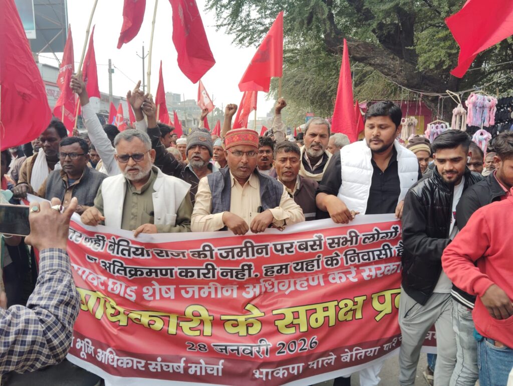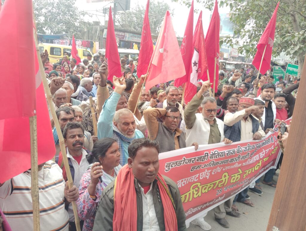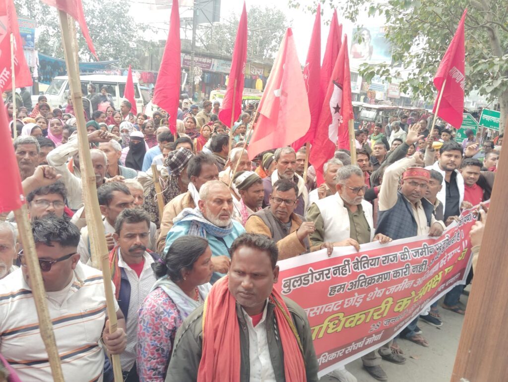 बेतिया राज की जमीन पर बुलडोजर कार्रवाई के खिलाफ भाकपा माले का धरना-प्रदर्शन