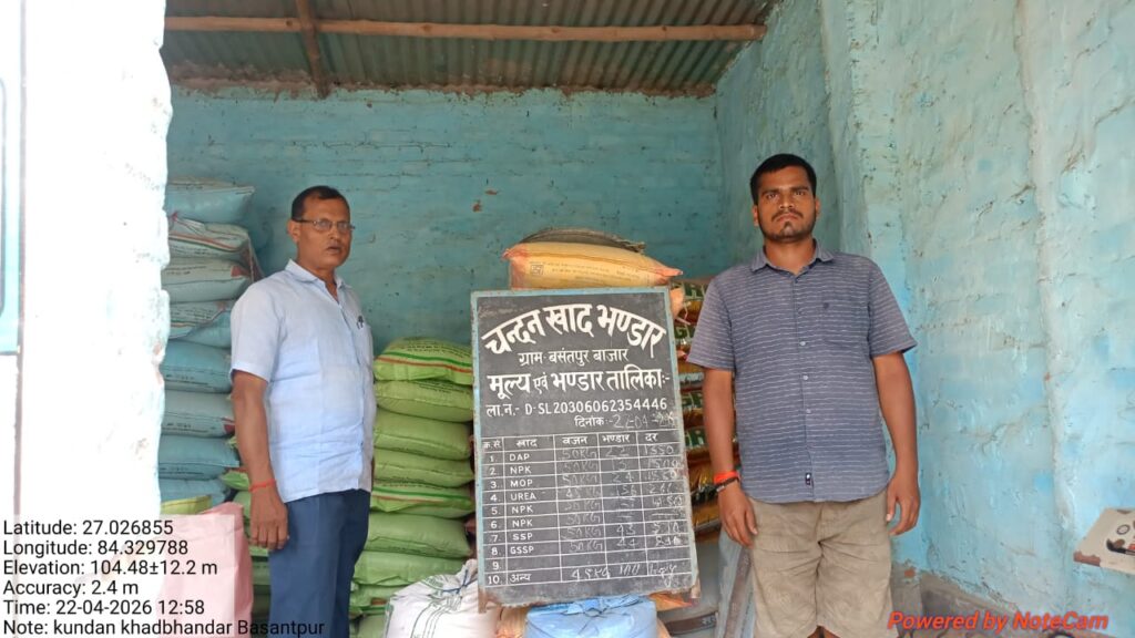 बेतिया मोहन सिंह। जिला पदाधिकारी तरनजोत सिंह के निर्देश के आलोक में जिले में उर्वरकों की उपलब्धता एवं वितरण व्यवस्था को पारदर्शी एवं सुचारु बनाए रखने हेतु जिला कृषि पदाधिकारी सहित अन्य अधीनस्थ पदाधिकारियों द्वारा विभिन्न उर्वरक प्रतिष्ठानों की औचक जांच की गई।जांच के दौरान अधिकारियों ने उर्वरकों के भंडारण, स्टॉक रजिस्टर, बिक्री रजिस्टर तथा निर्धारित दरों पर बिक्री की स्थिति का गहन निरीक्षण किया। साथ ही यह सुनिश्चित किया गया कि किसानों को निर्धारित मूल्य पर ही उर्वरक उपलब्ध कराया जा रहा है और किसी प्रकार की कालाबाजारी या अनियमितता नहीं हो रही है।निरीक्षण के क्रम में कई प्रतिष्ठानों को आवश्यक निर्देश दिए गए कि वे सभी अभिलेख अद्यतन रखें तथा सरकार द्वारा निर्धारित मानकों का कड़ाई से पालन करें। अधिकारियों ने स्पष्ट रूप से कहा कि किसी भी प्रकार की गड़बड़ी पाए जाने पर संबंधित प्रतिष्ठान के विरुद्ध सख्त कार्रवाई की जाएगी।