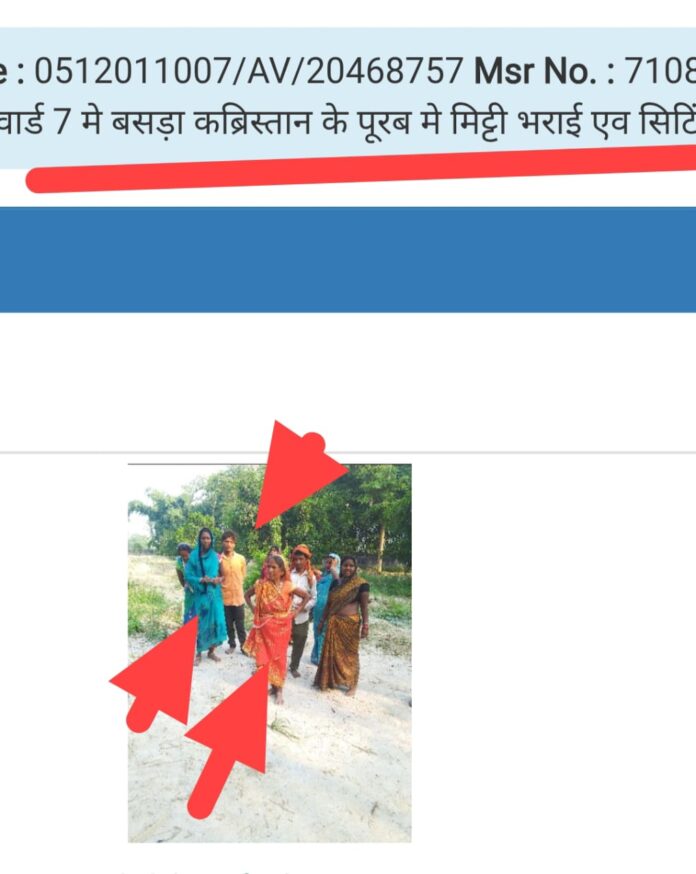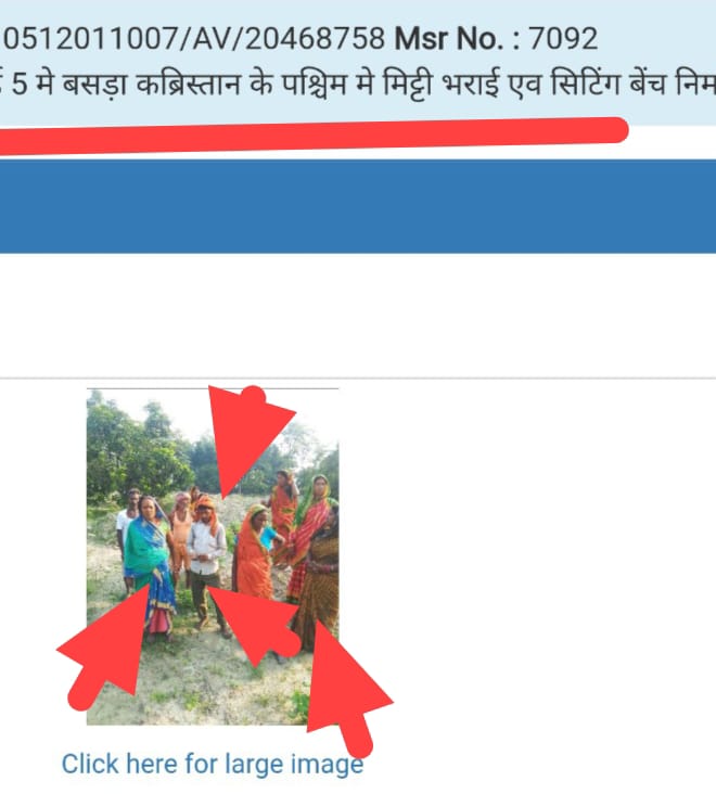 बेतिया(मोहन सिंह)।पश्चिमी चंपारण जिला के मझौलिया प्रखंड के महोदीपुर पंचायत में मनरेगा योजना में 2 अलग अलग योजनाओं में 1 ही मजदूरों वाली फोटो को एनएमएमएस पर अपलोड कर हाजरी बनाने और जमकर अनियमितता बरतने का सिलसिला लगातार जारी है।सूत्र बतातें है कि दिनाँक 6/6/25 को एनएमएमएस पर अपलोड वाली फोटो में बिना टोकरी कुदाल के जो मजदूर वार्ड 7 बसडा कब्रिस्तान के पूरब में मिट्टी भराई योजना में लगाई गई है वही मजदूरों वाली फोटो दूसरी योजना वार्ड 5 में बसडा कब्रिस्तान के पूरब में मिट्टी भराई योजना में भी लगाई गई है।सूत्रों के अनुसार पहली योजना में जहां 82 मजदूरों की हाजरी चल रही है वही दूसरी योजना में 73 मजदूरों की फर्जी हाजरी चल रही है।यानी एनएमएमएस पर अपलोड फोटो के अनुसार एक ही मजदूर 2 अलग अलग योजनाओं में एक ही समय काम कर रहे है।