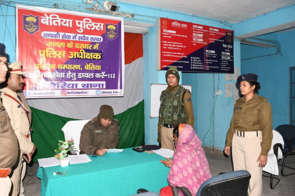 पुलिस मुख्यालय, बिहार पटना के निर्देशानुसार आज दिनांक 27 दिसंबर 2025 को डॉ० शौर्य सुमन, (भा०पु०से०) पुलिस अधीक्षक, प0 चम्पारण, बेतिया के द्वारा बेतिया लौरिया थाना में जनता दरबार सह भ्रमण कार्यक्रम आयोजन किया गया। इस कार्यक्रम में आमजनों एवं जनप्रतिनिधियों के समस्याओं/मामलों को सुनने के उपरांत उनका त्वरित समाधान हेतु पुलिस अधीक्षक महोदय, बेतिया द्वारा संबंधित पदाधिकारियों को आवश्यक दिशा-निर्देश दिए गए। इस कार्यक्रम के माध्यम से पुलिस-जनता संबंध को मजबूत करना, जनप्रतिनिधियों/ आमजनों की समस्या का त्वरित निष्पादन, महिलाओं एवं किशोरियों की समस्याएं का त्वरित निष्पादन एवं भय मुक्त वातावरण बनाने हेतु तथा पुलिंसिग की गुणवत्ता सुनिश्चित करना है। यह कार्यक्रम अनवरत् जारी रहेेगी। वही पुलिस अधीक्षक द्वारा लौरिया थाने का निरीक्षण भी किया गया। निरीक्षण के दौरान पुलिस अधीक्षक के गहनता से पुलिस रिकॉर्ड का अध्ययन किया और साथ ही कई सख्त आदेश दिए।