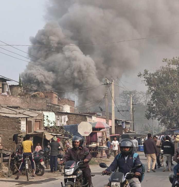 मझौलिया प्रखंड क्षेत्र के सरिसवा मुख्य मार्ग स्थित महान चौक पर बुधवार को उस समय अफरा-तफरी मच गई, जब एक दुकान में रखे गैस सिलेंडर से अचानक आग लग गई। देखते ही देखते आग ने विकराल रूप धारण कर लिया और आसपास की दुकानों को अपनी चपेट में ले लिया। घटना के बाद इलाके में धुएं का घना गुबार उठने लगा, जिससे सड़क पर आवागमन कुछ समय के लिए बाधित हो गया।