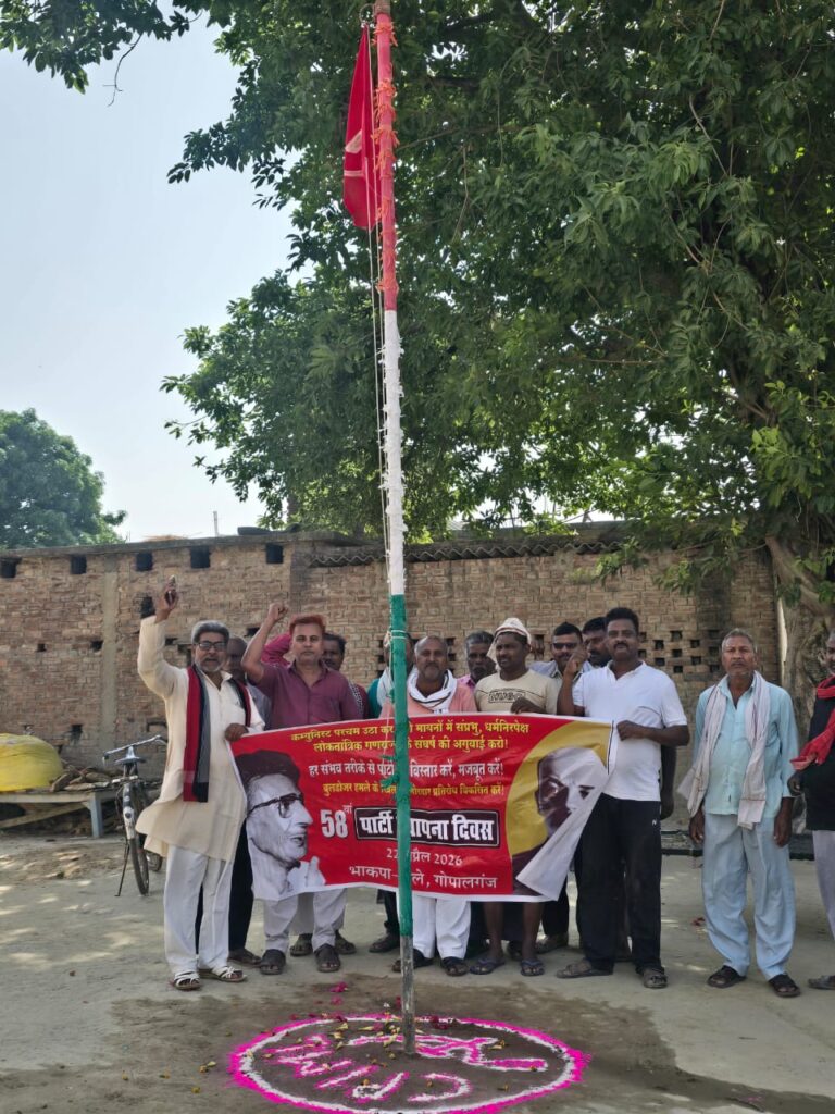 भाकपा माले ने गोपालगंज पार्टी जिला कार्यालय सहित जिलें के खजूरी (कुचायकोट), दगंसी ( बरौली), लाढ़पुर (फुलवरिया) छितौना, मथौली (विजयीपुर) पंचदेवरी और भोरे पार्टी कार्यालय पर झंडातोलन कर57 वां स्थापना दिवस मनाया।