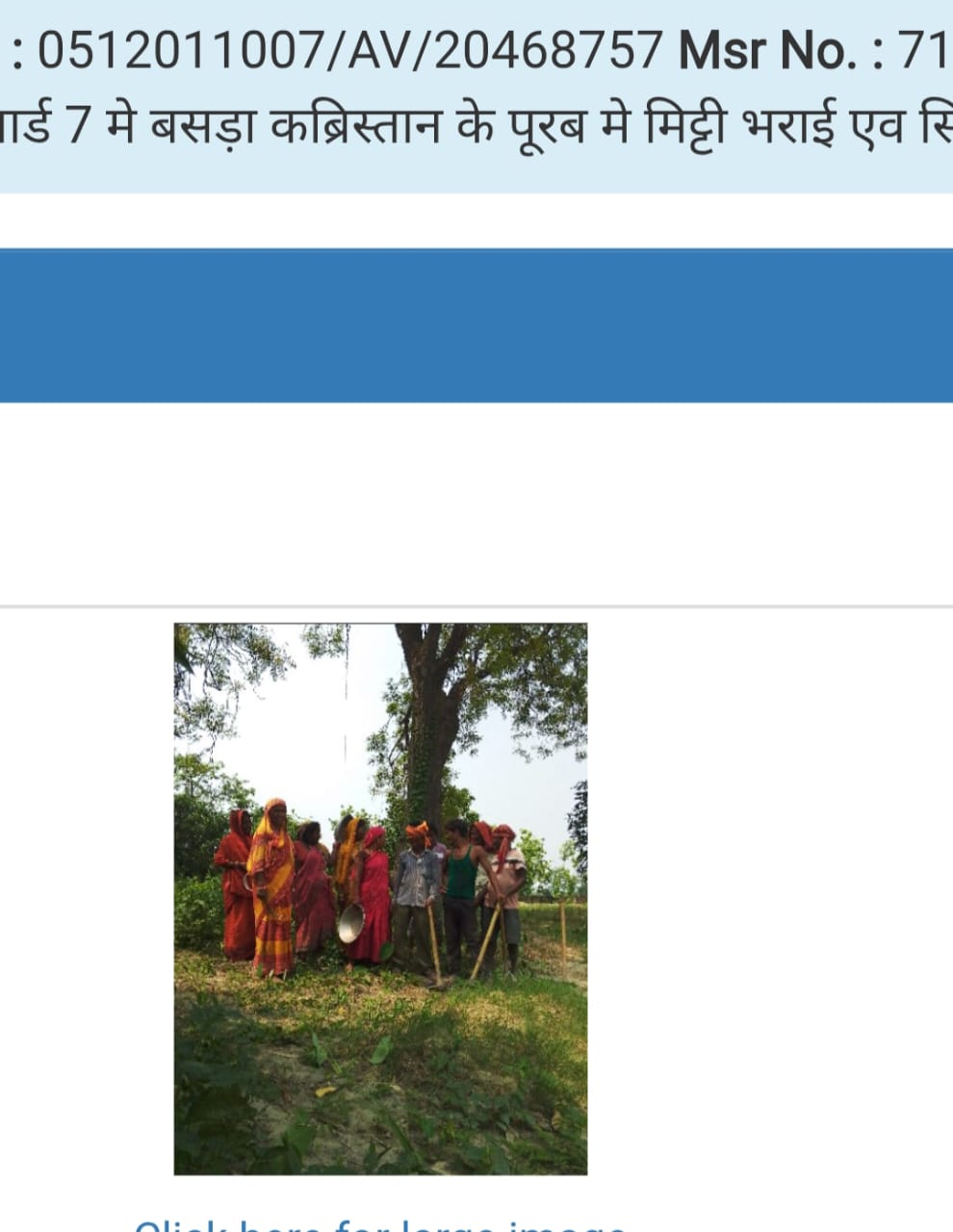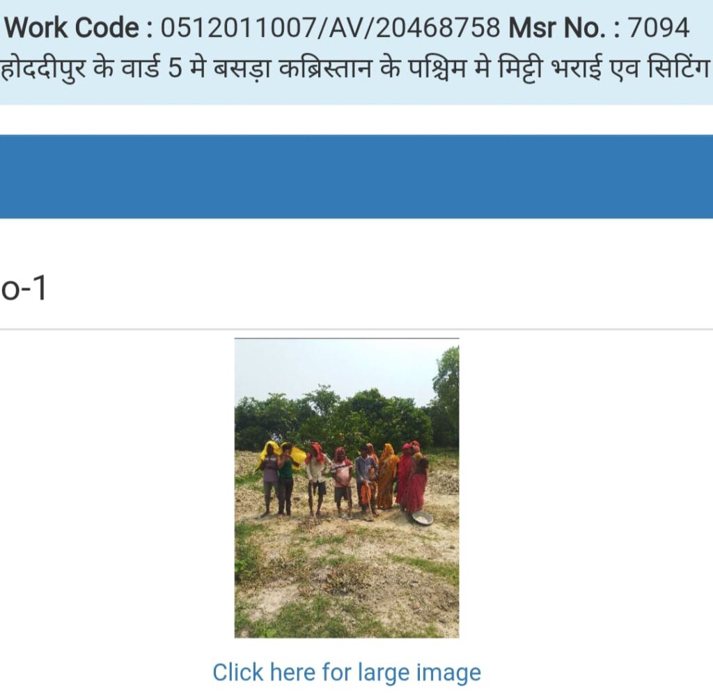 बेतिया(मोहन सिंह)।पश्चिमी चंपारण जिला के मझौलिया प्रखंड के महोदीपुर पंचायत में मनरेगा योजना में जमकर हो रही अनियमितता रुकने का नाम नही ले रही है।अभी भी विभागीय उदासीनता के कारण लगातार 2 अलग अलग योजनाओं में 1 ही मजदूरों वाली फोटो को एनएमएमएस पर अपलोड कर हाजरी बनाने और जमकर अनियमितता बरतने का सिलसिला लगातार जारी है।सूत्र बतातें है कि 10/6/25 को एनएमएमएस पर अपलोड वाली फोटो में जो मजदूर वार्ड 7 बसडा कब्रिस्तान के पूरब में मिट्टी भराई योजना में लगाई गई है वही मजदूरों वाली फोटो दूसरी योजना वार्ड 5 में बसडा कब्रिस्तान के पूरब में मिट्टी भराई योजना में भी लगाई गई है।सूत्रों के अनुसार पहली योजना में जहां 82 मजदूरों की हाजरी चल रही है वही दूसरी योजना में 73 मजदूरों की फर्जी हाजरी चल रही है।यानी एनएमएमएस पर अपलोड फोटो के अनुसार एक ही मजदूर 2 अलग अलग योजनाओं में एक ही समय काम कर रहे है।