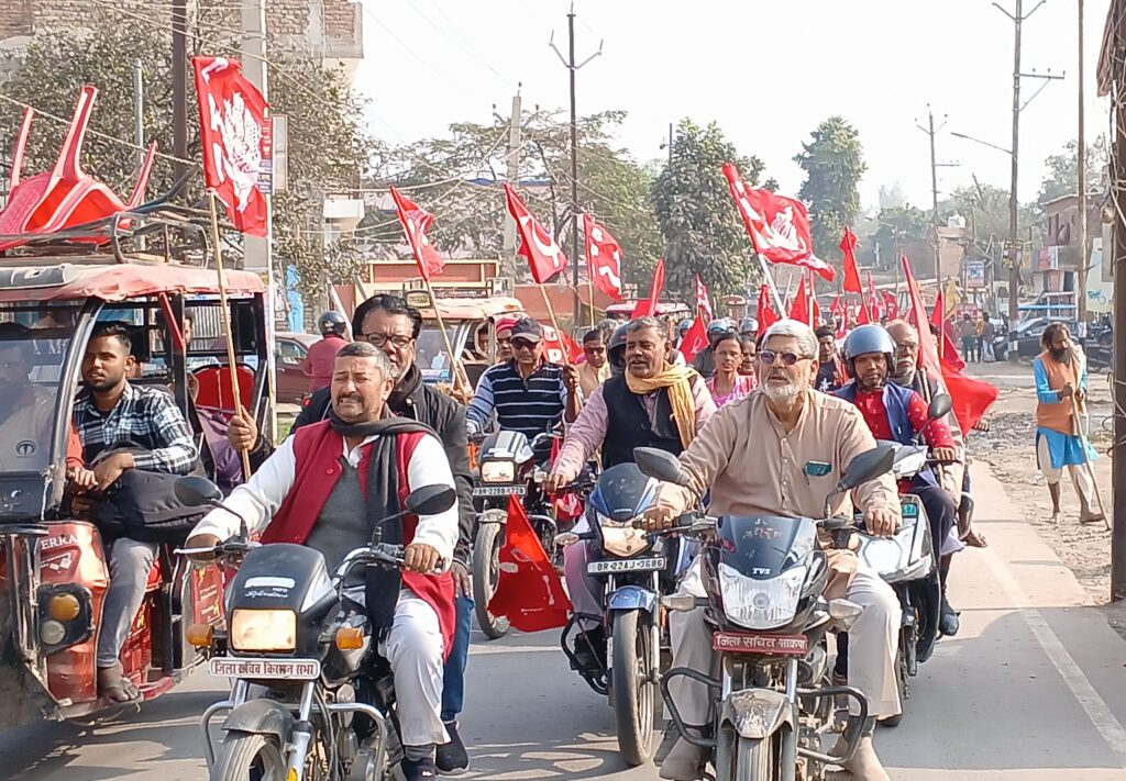 भारतीय कम्युनिस्ट पार्टी की स्थापना के 99 वीं बर्ष गांठ एवं शताब्दी बर्ष शुरू होने के अवसर पर भाकपा के जिला कार्यालय में पार्टी का झंडा फहरा कर तथा शहिद वेदी पर माल्यार्पण कर किया गया, उसके बाद पार्टी कार्यकर्ताओं ने बेतिया शहर में बाईक रैली निकाल कर शहर के विभिन्न मार्गो से होते हुए किसान मजदूरों की पार्टी भारतीय कम्युनिस्ट पार्टी, छात्र नौजवानों की पार्टी भारतीय कम्युनिस्ट पार्टी, जूल्म और शोषण के खिलाफ लडने वाली पार्टी भारतीय कम्युनिस्ट पार्टी, भाकपा का शताब्दी बर्ष जिन्दाबाद का नारा लगाते हुए पार्टी कार्यालय बलिराम भवन पहुंचे जहां सभा का आयोजन कर पार्टी के 100 बर्षो के गौरवशाली इतिहास पर प्रकाश डालते हुए वक्ताओं ने जनता के जीवन से जुड़े सवालों पर संघर्ष तेज करने का आह्वान किया, आज सत्ता में बैठी शक्तियां संविधान एवं लोकतंत्र के साथ साथ धर्मनिरपेक्षता को समाप्त करने पर तुली हुई है, गरीबों किसानों, नौजवानों महिलाओं के हक पर लगातार चोट किया जा रहा है, बढ़ती महंगाई, बेरोजगारी भ्रष्टाचार सुड़सा की तरह मुह बढाती जा रहीं हैं इसके खिलाफ संघर्ष तेज करने का संकल्प लिया गया, सभी पार्टी शाखाओं, अंचलों में पार्टी सदस्यता नवीकरण के साथ साथ पार्टी शताब्दी समारोह आयोजित करने नये लोगों खास कर महिलाओं, नौजवानों, अल्पसंख्यकों को पार्टी से जोड़ कर पार्टी के कतार को मजबूत करने का संकल्प लिया गया,