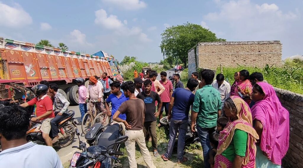मझौलिया पंचायत के देवान टोली ईदगाह स्थित एक ट्रक और बाइक की टक्कर में बाइक सवार की घटना स्थल पर हुई मौत, मृत व्यक्ति की पहचान 32 वर्षीय मनोहर चौरसिया पिता रामबेलास चौरसिया घर बेख़बरा की रूप में की गई है,मनोहर SBI के लाइफ इंसोरेंश का एजेंट का काम कर था और मझौलिया में अपना कम्प्यूटर का दुकान खोलने जा रहा था, आज वह अपने घर से मझौलिया दुकान पर आ रहा था तभी मझौलिया के तरफ से जा रही ट्रक और बाइक आमने सामने टक्कर हो गई और यह घटना घटी है,ट्रक अनियंत्रित होकर पलटा हुआ है ट्रक ड्राइवर गाड़ी छोड़कर फरार हो गया है।स्थानीय ग्रामीणों औऱ परिजनों ने मझौलिया पीएचसी अस्पतला ले गया जहां डॉक्टर ने मृत घोषित कर दिया यह जानकारी मझौलिया थानाध्यक्ष अवनीश कुमार ने बताया है कि शव को आपने कब्जे में लेकर पोस्मार्टम हेतु जीएमसीएच भेज दिया गया है। और ट्रक को अपने कब्जे में लेकर थाना लाया जा रहा है जांच कर कानूनी कार्रवाई की जाएगी और परिजनों का रो रो कर बुरा हाल हाल, मृतक को एक पुत्र और एक पुत्री है।