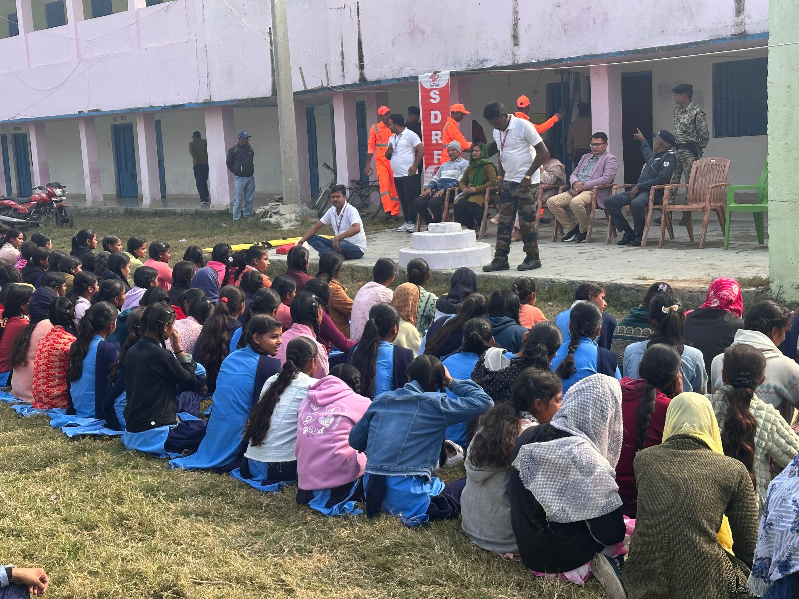 आपदा प्रबंधन शाखा द्वारा आज एसडीआरएफ एवं आपदा मित्रों के सहयोग से विपिन हाई स्कूल, बेतिया में आपदा से बचाव एवं त्वरित प्रतिक्रिया को लेकर मॉक ड्रिल का सफल आयोजन किया गया।