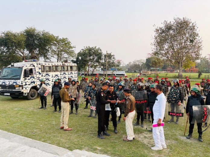 1 मार्च 26 को पुलिस अधीक्षक , पश्चिम चंपारण बेतिया के निर्देशानुसार आगामी त्योहार होली पर्व के मद्देनज़र आपात स्थिति में त्वरित कार्रवाई हेतु दंगा नियंत्रण टीम का गठन किया गया साथ ही पुलिस केंद्र बेतिया स्थित मैदान में उक्त गठित टीम के मॉक ड्रिल का अभ्यास किया गया । उक्त टीम के सभी पदाधिकारी /कर्मियों को हेलमेट, बॉडी प्रोटेक्टर, चेस्ट गार्ड , लाठी एवं टियर गैस के साथ लैस किया गया है जो 24×7 सक्रिय रहेंगे साथ ही किसी भी आपातकाल स्थिति/दंगा/विधि व्यवस्था के संधारण हेतु अविलंब घटना स्थल पहुंचेंगे।
