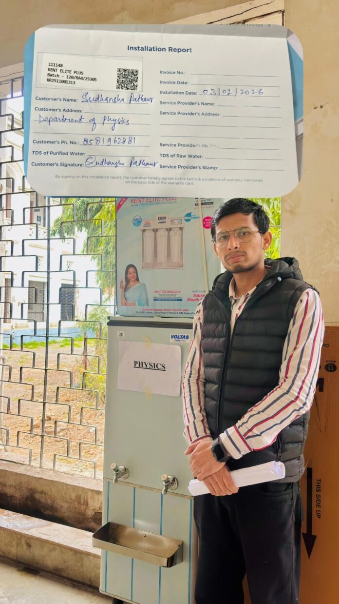 पटना विश्वविद्यालय छात्र संघ चुनाव 25 से नवनिर्वाचित काउंसलर और शैक्षिणक सचिव सुधांशु राठौर ने विज्ञान संकाय के प्राणी,वनस्पति रसायन,भौतिक विज्ञान और जैव प्रौद्योगिकी विज्ञान में छात्र संघ के सहयोग से 5 वॉटर कूलर विथ फिल्टर लगने के बाद रविवार को प्रेस विज्ञप्ति जारी करते हुए राठौर ने बताया की छात्र संघ चुनाव 2025 में काउंसलर पद के लिए चुनाव लड़ते समय हमने देखा कि कई विभागों में छात्रों को स्वच्छ और ठंडा पीने का पानी तक उपलब्ध नहीं है।