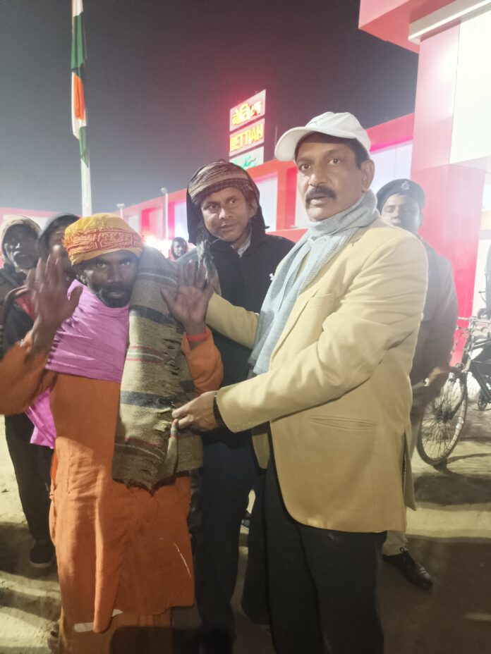 बेतिया मोहन सिंह। जिलाधिकारी, दिनेश कुमार राय ने आज बेतिया शहर के विभिन्न स्थलों यथा दुर्गाबाग मंदिर, बस स्टैंड, रेलवे स्टेशन, हरिवाटिका चौक का भ्रमण कर ठंड से ठिठुरते 2 सौ से अधिक लोगों को आज रात्रि कंबल ओढ़ाया।