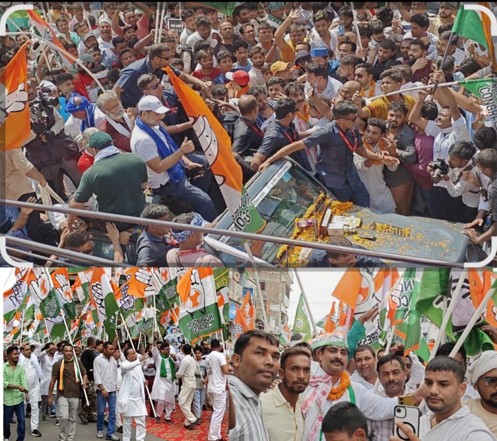 समर्थकों की भारी भीड़ से गदगद हुए राहुल – तेजस्वी ।