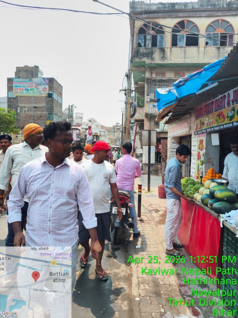 शहर की यातायात व्यवस्था को दुरुस्त करने और आम नागरिकों की सुरक्षा को सुनिश्चित करने के उद्देश्य से आज नगर निगम बेतिया द्वारा बड़ी कार्रवाई की गई। प्रशासन ने फुटपाथों पर जमे अवैध कब्जे और अस्थाई अतिक्रमण के खिलाफ एक सघन अभियान चलाया।