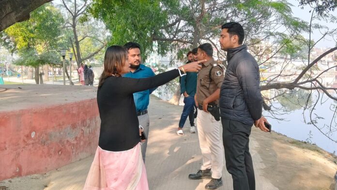 उत्तरवारी पोखरा के चिल्ड्रेन पार्क में लाइटिंग और फव्वारा के चालू नहीं रहने तथा साफ सफाई खराब पाकर बिगड़ी महापौर,