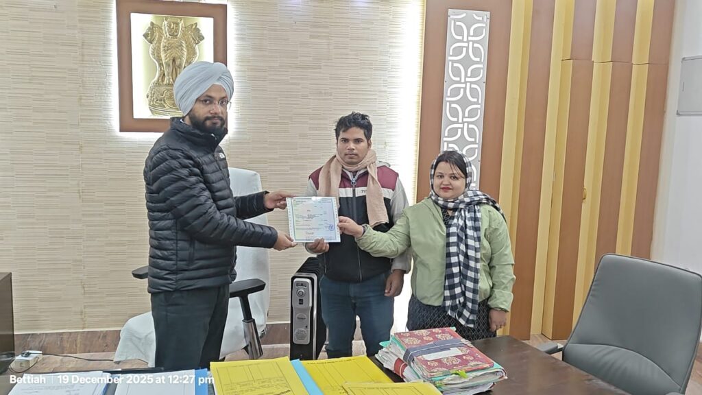 जिला पदाधिकारी, पश्चिम चंपारण, तरनजोत सिंह द्वारा आज सामाजिक समरसता एवं समानता को बढ़ावा देने के उद्देश्य से संचालित अंतर्जातीय विवाह प्रोत्साहन अनुदान योजना के अंतर्गत तीन लाभुक दंपतियों को एक–एक लाख रुपये का सावधि जमा पत्र (एफडी) प्रदान किया गया। यह वितरण कार्यालय प्रकोष्ठ में आयोजित कार्यक्रम के दौरान किया गया।