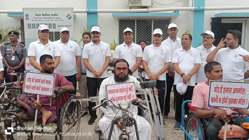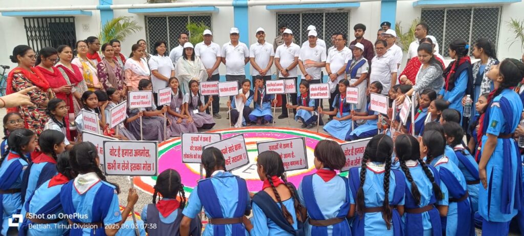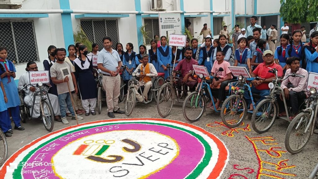 मंगलवार 3 जून 2025 को प०चम्पारण जिले में साइकिल दिवस के अवसर पर मतदाता जागरूकता रैली का आयोजन किया गया साथ ही मतदाता शपथ का आयोजन, सेल्फी पॉइंट में सेल्फी लेकर वोट की अपील, स्वीप लोगो रंगोली के माध्यम से वोट की अपील।